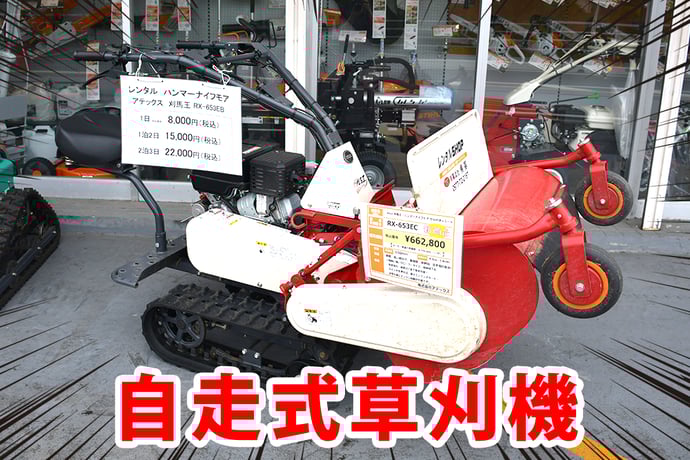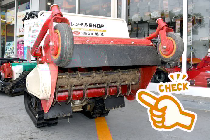 Y字型のハンマー状の刃(ハンマーナイフモア)が縦に回転し、
