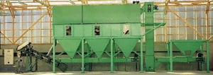 乾燥した堆肥(鶏糞)を、三種類のステンレス網で選別して種類別に袋詰めできるシステムです。